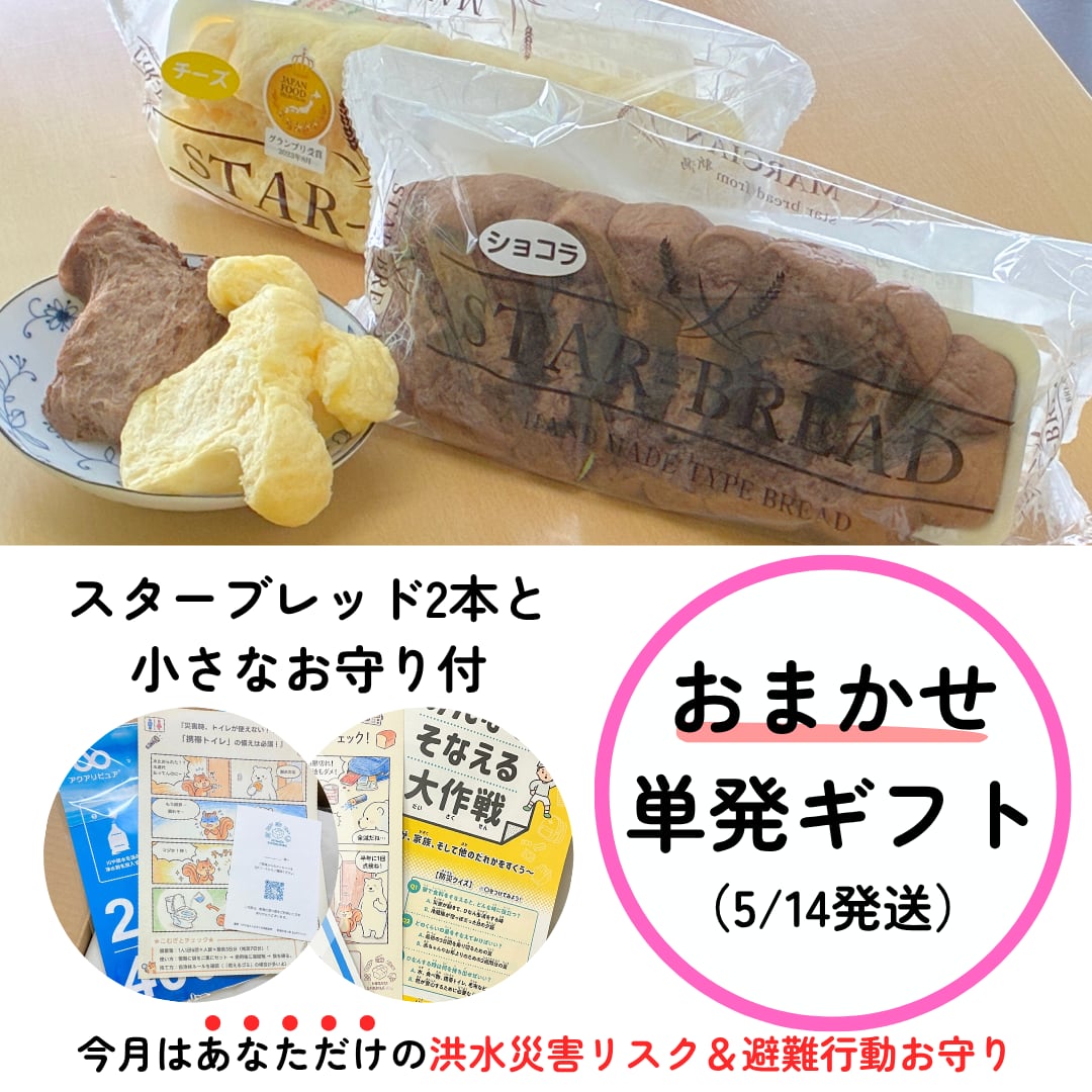 ふんわりとした食感のスターブレッド2本と、防災4コマ漫画、メッセージカードをセットにしてお届けします。